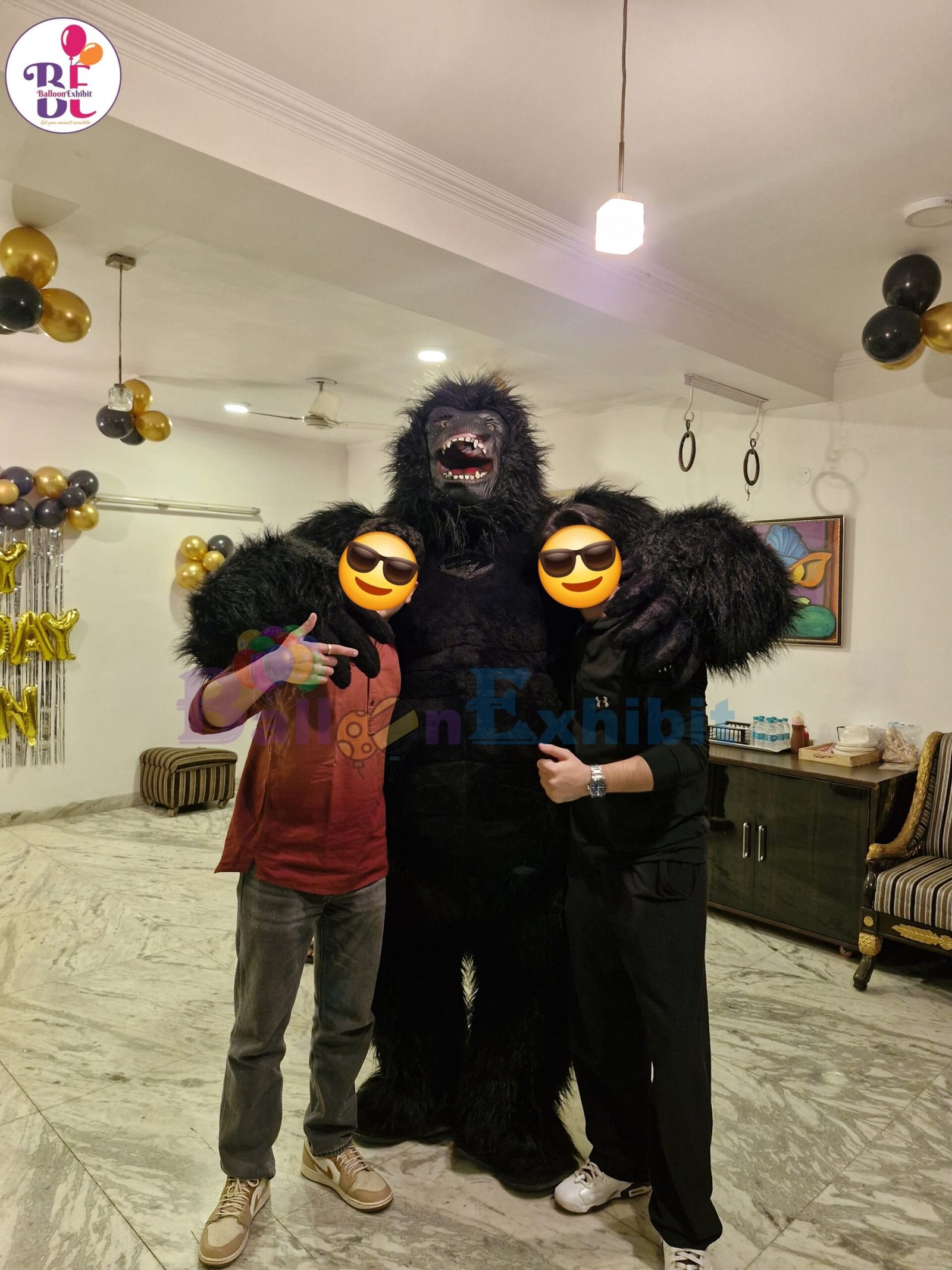 At BalloonExhibit – Event Planner & Decorator, we provide professional Gorilla Mascot entertainment for weddings in Mumbai. Our trained performers wear premium-quality gorilla costumes and energize the crowd with dance moves, funny interactions, and photo opportunities with guests.